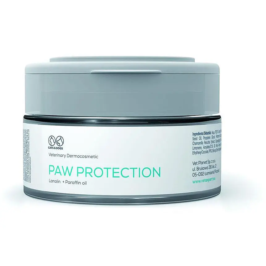 БАГАТА ФОРМУЛА ДЛЯ ЗАХИСТУ ТА ЖИВЛЕННЯ Захисна мазь для подушечок лап котів і собак з найбагатшою формулою на ринку та широким спектром застосування. Її інгредієнти створюють захисну плівку, яка пом’якшує вплив холоду, морозу та солі. Захисна мазь також зволожує та змащує шкіру, заспокоює подразнення, прискорює регенерацію та загоєння.