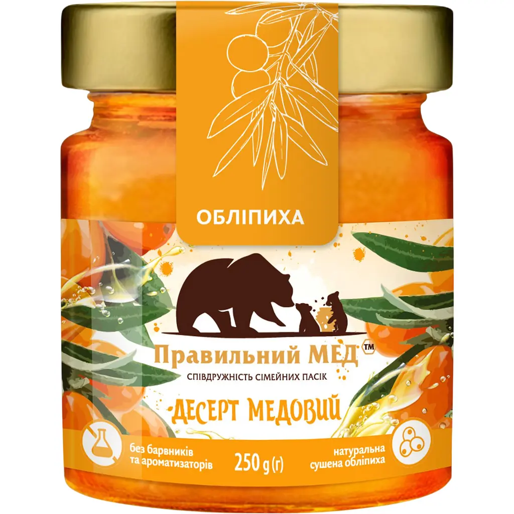 Мед з обліпихою - це потужний вітамінний комплекс, створений самою природою. Цей продукт поєднує натуральний мед із кисло-солодкими, багатими на вітаміни ягодами обліпихи. Яскраво-помаранчевий колір і характерний смак обліпихи роблять цей мед не лише корисним, але й неймовірно апетитним. Обліпиха відома високим вмістом вітаміну С, а в поєднанні з медом, її цілющі властивості значно посилюються. Цей мед - ідеальний вибір для підтримки імунітету в міжсезоння та для тих, хто прагне збагатити свій раціон натуральними суперфудами.