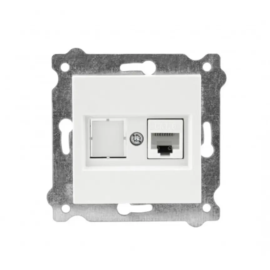 Комп'ютерна розетка RJ45 UTP 5e серії Exen створена для зручного підключення інтернет-кабелю. Устаткування відноситься до класу 5е, а це означає, що використання такої розетки дозволяє створити інтернет-канал з пропускною швидкістю в 100 Мбіт/с.