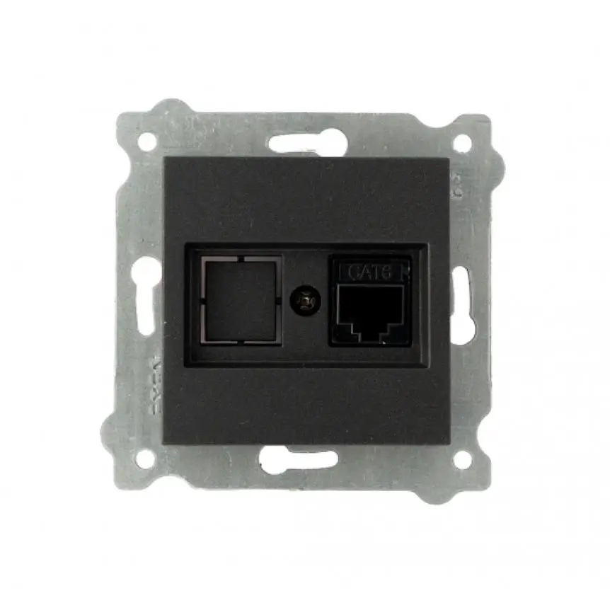 Комп'ютерна розетка RJ45 UTP 5e серії Exen створена для зручного підключення інтернет-кабелю. Устаткування відноситься до класу 5е, а це означає, що використання такої розетки дозволяє створити інтернет-канал з пропускною швидкістю в 100 Мбіт/с.