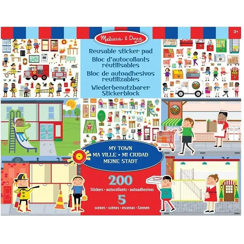 Набір багаторазових наліпок Melissa & Doug "Моє місто" знайомить із повсякденним життям у місті: школа, супермаркет, лікарня, пожежна частина та ресторан стають сценою для гри.
