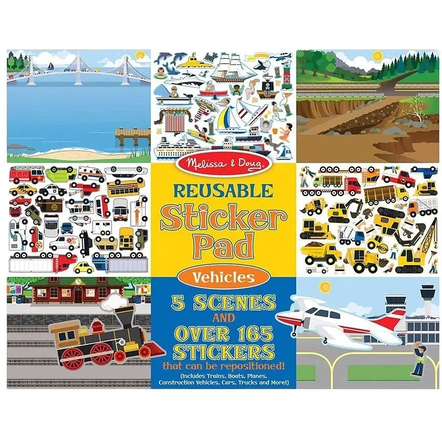 Юним шанувальникам техніки сподобається цей великий набір багаторазових наліпок Транспорт від Melissa & Doug, створений спеціально для гри з улюбленими видами транспорту! На п’яти глянцевих сценах - аеропорт, шосе, будівельний майданчик, порт і залізниця - дитина може розміщувати понад 165 тематичних наліпок, створюючи динамічні та захопливі історії.