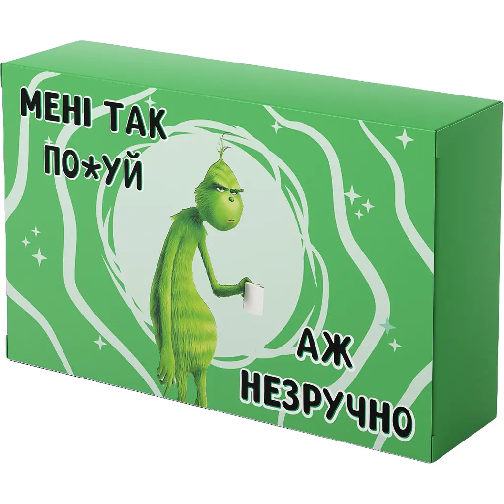 Шоколад Prank хапайсміх Мені так по*уй (PRIKMAL-105) – це іронічний десерт для тих, хто опанував мистецтво дзену та вміє зберігати незворушність у будь-якій ситуації. Яскраве зелене пакування із зображенням легендарного Грінча з горнятком кави влучно передає стан повного емоційного штилю, коли зовнішні подразники більше не мають сили. Такий шоколад стане чудовим жартівливим подарунком для друзів або колег, які цінують міцний гумор та вміють розставляти пріоритети на користь власного спокою.