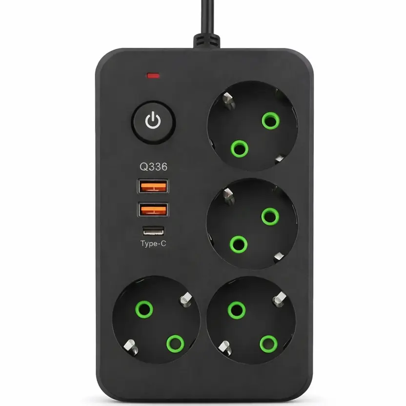Практичний подовжувач із чотирма розетками європейського типу та трьома USB-портами (два USB-A і один Type-C) створений для тих, хто цінує функціональність і компактність. Цей пристрій оптимізує використання електромережі, дозволяючи одночасно живити побутову техніку та заряджати портативні гаджети без додаткових блоків живлення. Довжина кабелю 3 метри забезпечує достатній радіус дії для більшості приміщень.
