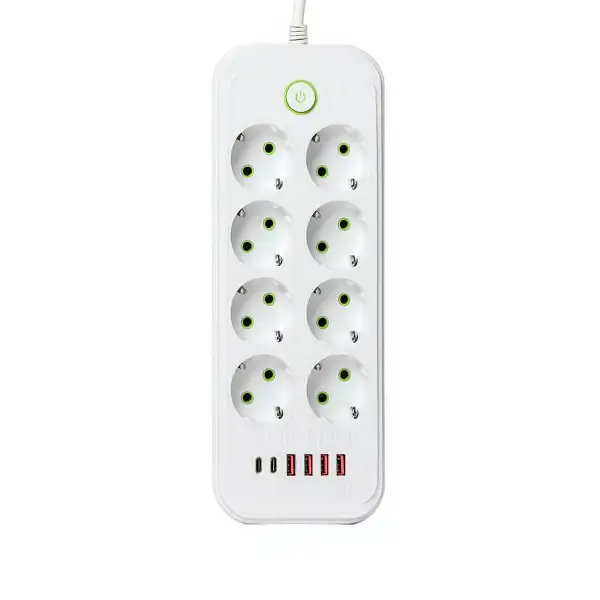 Корпус виготовлений із вогнестійкого ABS-пластику та має компактні розміри, що дозволяє розмістити подовжувач навіть у обмеженому просторі. Євророзетки розташовані з урахуванням зручності підключення різних типів вилок. На корпусі передбачено 4 USB-A порти та 2 USB Type-C для заряджання смартфонів, планшетів, навушників та інших пристроїв.