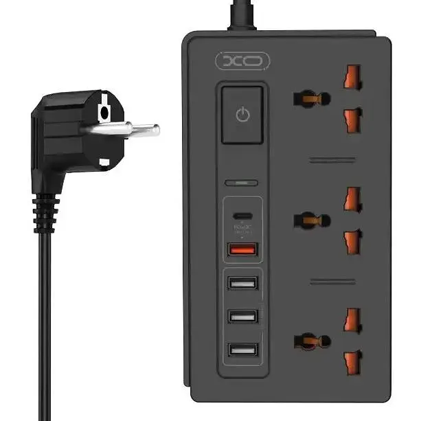 Купити подовжувач мережі XO WL06 це дуже практичне рішення, адже маючи тільки одну вільну розетку ви зможете підключити три пристрої звичайними мережевими штекерами і ще п'ять гаджетів через кабелі USB і Type-C.