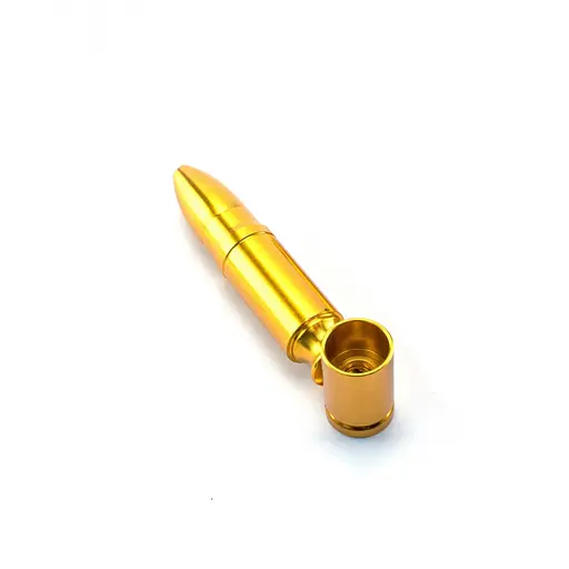 Металева трубка Bullet 8см. Трубка для куріння органічних сумішей виконана у формі патрона, виготовлена із нержавіючої сталі. Цей девайс складається з двох частин - чаші та основи, за рахунок своїх невеликих розмірів, а це 80 мм. компактний девайс можна сховати в будь-якій невеликій кишені або рюкзаку.