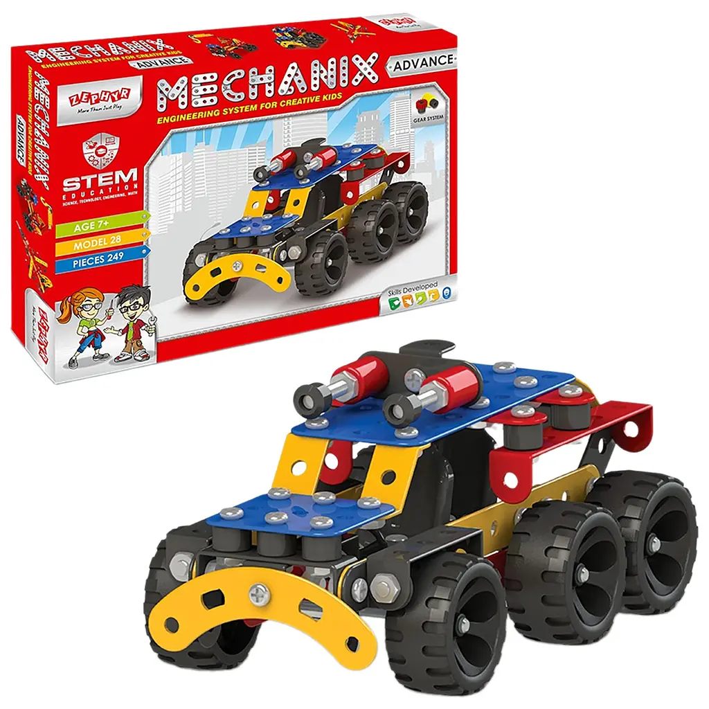 Конструктор Zephyr Mechanix Advance - це металевий розвивальний конструктор, з яким дитина зможе гратися протягом тривалого часу, зібравши при цьому почергово 28 моделей різноманітних транспортних засобів, будівельної техніки, військової техніки, або ж придумавши власні конструкції з запропонованих деталей.