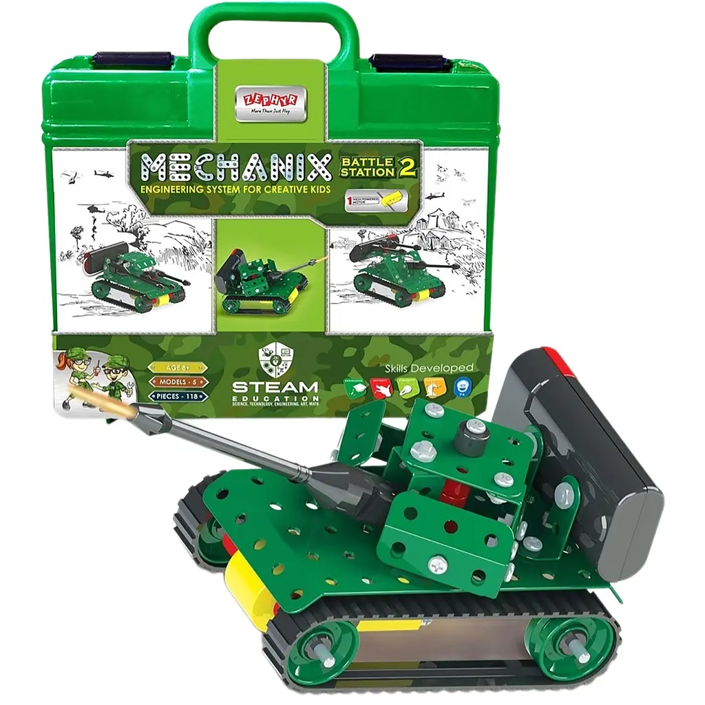Конструктор Zephyr Mechanix Battle Station - спеціалізований набір для любителів танків та руху. Дізнайтеся все про гусеничний двигун та його переваги перед іншими видами руху. Розважайтесь годинами з цим захопливим та дивовижним набором танків, створеним вами.