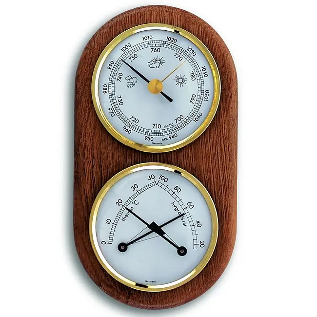 Виробник: TFA Dostmann GmbH & Co.KG, GermanyОсобливості:Вироблено в НімеччиніКомпактна метеостанція з масиву дубаЗ барометром і термогігрометромВимірює тиск повітря, температуру і вологість в приміщенніБарометр для місцевого прогнозу погодиНе потребує використання батарейокГарантія 3 рокиЦя компактна метеостанція виготовлена з масиву дуба, складається з барометра і комбінованого термогігрометра. Барометр вимірює атмосферний тиск і дозволяє робити місцевий прогноз погоди. Зі збільшенням тиску повітря погода поліпшується, а зі зменшенням тиску повітря вам слід очікувати погіршення погоди. Контролюючи температуру і вологість в приміщенні, ви можете створити комфортний і здоровий клімат в приміщенні і заощадити на опаленні. Метеостанція повністю виготовлена в Німеччині.Основним елементом TFA є власне виробництво механічних погодних інструментів. TFA створює продукцію, що відповідає етикетці «Зроблено в Німеччині», з використанням найсучасніших технологій виробництва і традиційного ремісничого виробництва. Продукція від TFA переконує в функціональності і дизайні.