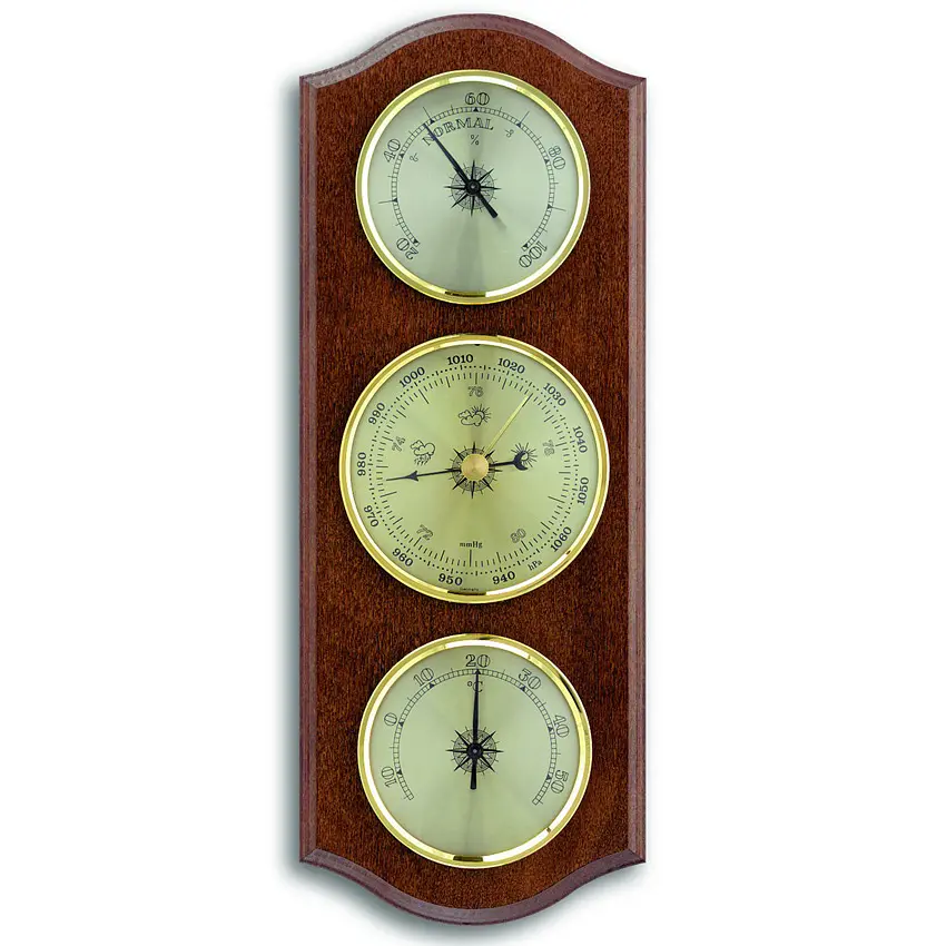 Виробник: TFA Dostmann GmbH & Co.KG, GermanyОсобливості:Вироблено в НімеччиніМетеостанція з масиву дерева в класичному дизайніЗ барометром, термометром і гігрометромВимірює тиск повітря, температуру і вологість в приміщенніБарометр для місцевого прогнозу погодиНе потребує використання батарейокГарантія 3 рокиМетеостанція з масиву дерева складається з барометра, термометра і гігрометра. Барометр вимірює атмосферний тиск і дозволяє робити місцевий прогноз погоди. Зі збільшенням тиску повітря погода поліпшується, а зі зменшенням тиску повітря вам слід очікувати погіршення погоди. Контролюючи температуру і вологість в приміщенні, ви можете створити комфортний і здоровий клімат в приміщенні і заощадити на опаленні. Метеостанція повністю виготовлена в Німеччині.Основним елементом TFA є власне виробництво механічних погодних інструментів. TFA створює продукцію, що відповідає етикетці «Зроблено в Німеччині», з використанням найсучасніших технологій виробництва і традиційного ремісничого виробництва. Продукція від TFA переконує в функціональності і дизайні.