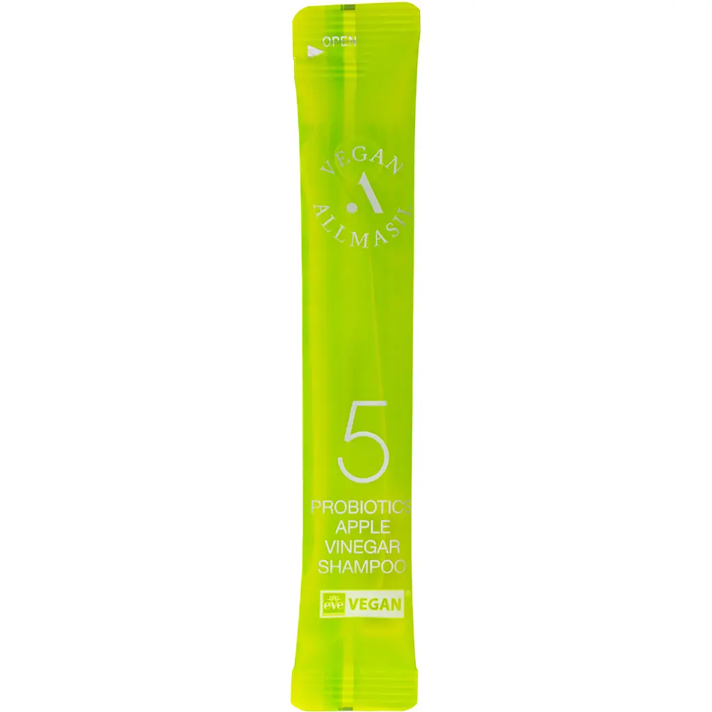 М'який безсульфатний шампунь з пробіотиками і яблучним оцтом All Masil 5 Probiotics Apple Vinegar Shampoo містить лактобактерії, які нормалізують гідробаланс шкірного покриву, пом'якшують його, перешкоджають появі лупи. Також шампунь допоможе зміцнити коріння волосся, контролювати роботу сальних залоз.