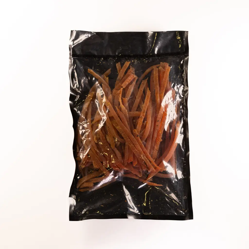 Сушене м’ясо курки з ароматом грилю – це м’ясні чіпси, які отримали свій смак завдяки спеціальному процесу підготовки та спеціям. Приємна текстура та помірна солоність роблять ці курячі чіпси універсальним м’ясним снеком. Цей протеїновий перекус чудово підійде для тих, хто шукає здорові снеки.