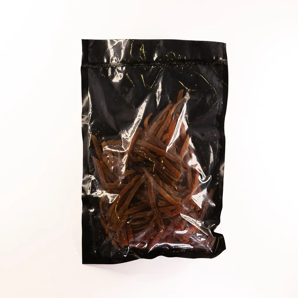 Сушене м’ясо свинини з легкими фруктовими нотами – це м’ясні чіпси, які отримали свій смак завдяки спеціальному процесу підготовки та спеціям. Приємна текстура та помірна солоність роблять ці чіпси універсальним м’ясним снеком. Цей протеїновий перекус чудово підійде для тих, хто шукає здорові снеки.
