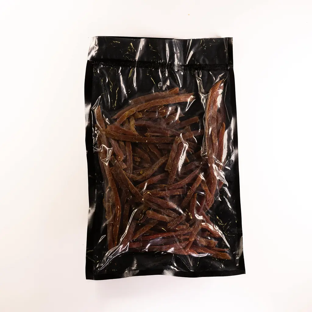 Сушене м’ясо свинини з легкими фруктовими нотами – це м’ясні чіпси, які отримали свій смак завдяки спеціальному процесу підготовки та спеціям. Приємна текстура та помірна солоність роблять ці чіпси універсальним м’ясним снеком. Цей протеїновий перекус чудово підійде для тих, хто шукає здорові снеки.