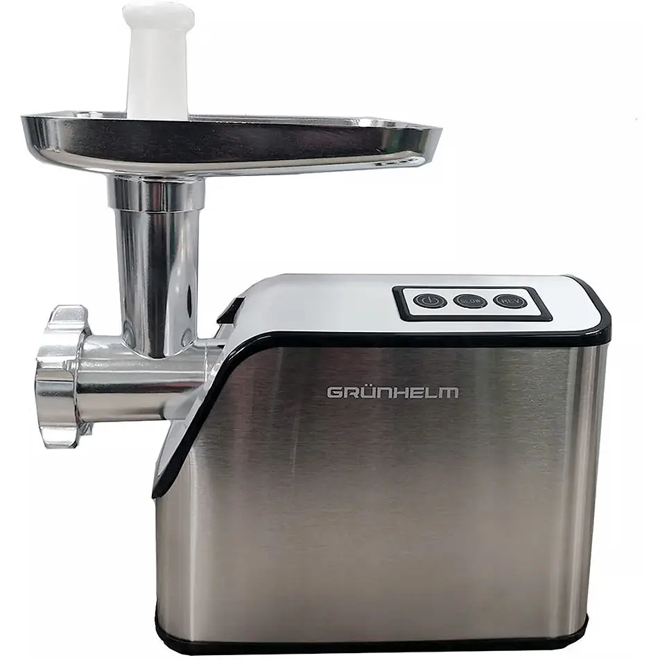 Електрична м'ясорубка Grunhelm AMG2634ASSJ - надійний побутовий прилад з комплектом додаткових насадок для виконання операцій з шинкування, подрібнення і перемелювання овочів, фруктів і м'яса. З даною електро м'ясорубкою можна сміливо братися за приготування будь-якої страви та бути впевненим на 100% - вона вам під силу! Потужність мотора становить 2600Вт, чого цілком достатньо для роботи за максимальних навантажень. Відмінність електро м'ясорубки Grunhelm AMG2634ASSJ від аналогів полягає в наявності спеціальної насадки для соку і комплекту барабанів для шинкування. Також варто відзначити захист від перегріву і функцію реверс. Таким чином, вибравши м'ясорубку Grunhelm, ви за цілком прийнятною ціною купуєте надійний і якісний прилад.