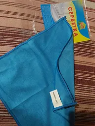 Гарна серветка для прибирання, досить велика, зручно мити дзеркала. Не залишає розводів!) Двостороння: одна сторона- для видалення бруду, друга- для полірування. На етикетці вказано, якою стороною, що робити. Рекомендую!