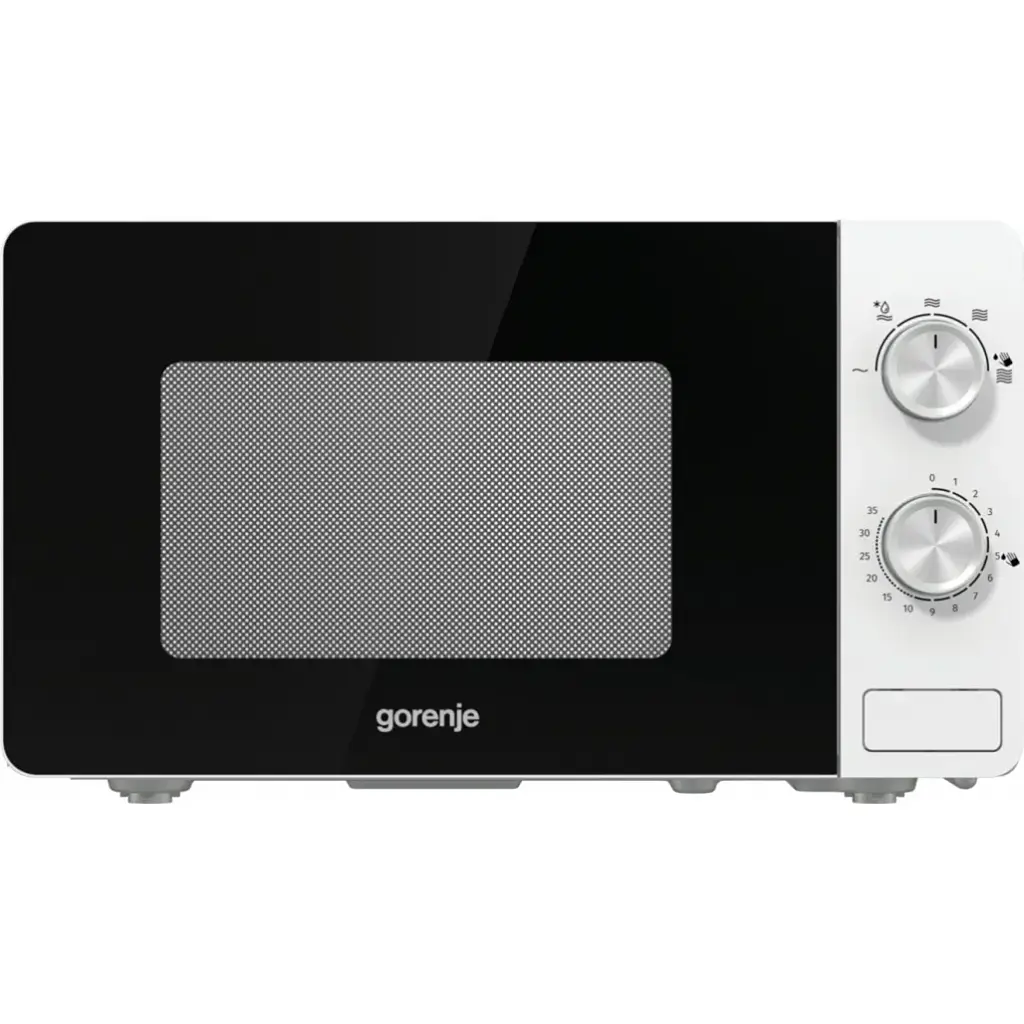Сучасна мікрохвильова піч Gorenje MO20E1W з механічним керуванням буде гарним помічником будинку та в офісному кабінеті, щоб комфортно та безпечно розігрівати та готувати їжу. У ній застосовано джерело НВЧ-випромінювання потужністю 800 Вт, яке регулюється 5 рівнями за допомогою поворотного перемикача. Внутрішня поверхня камери приладу об'ємом 20 літрів покрита міцною емаллю, що легко очищається від харчових забруднень вологою серветкою.