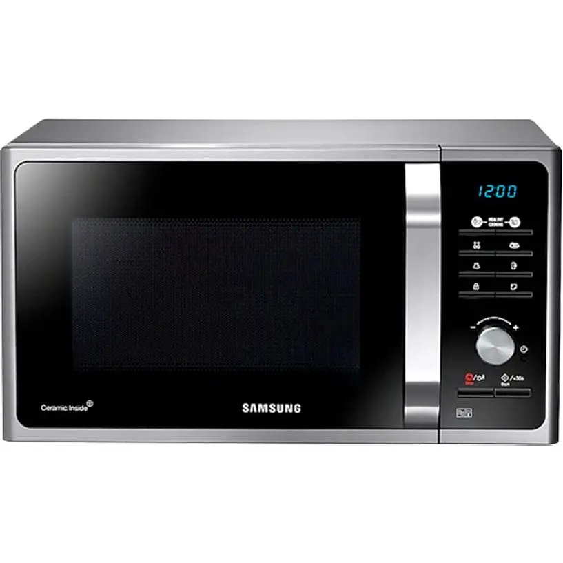 Samsung MS23F301TAS - виконана в чорному кольорі мікрохвильова піч. Ручка на дверцятах та перемикачі пофарбовані в красивий сріблястий відтінок. Панель керування з LED-дисплеєм доповнена цікавим світлом синього кольору. Як бачите, такий дизайн гармонійно впишеться у будь-який інтер'єр кухні.