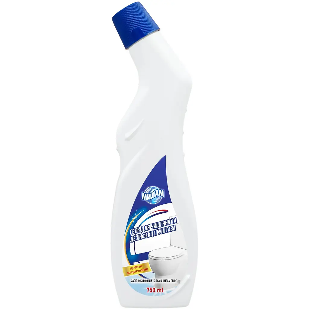 Засіб для миття та дезінфекції унітазів, ванн, кахельних поверхонь та підлог, сміттєвих відер. Вбиває неприємний запах та мікроби. Не ушкоджує емалі.