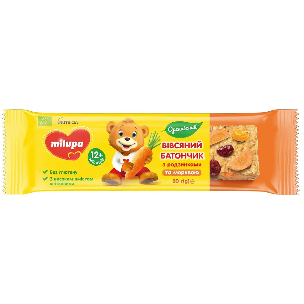 Батончик вівсяний Milupa з родзинками та морквою - це смачний і корисний перекус для дітей старше 12 місяців. Виготовлений з органічних інгредієнтів, він забезпечує вашій дитині натуральний смак і поживні елементи, необхідні для здорового розвитку. Легкий, смачний і зручний у використанні, цей батончик стане відмінним доповненням до раціону вашої дитини, забезпечуючи їй енергію і задоволення в будь-який час дня.