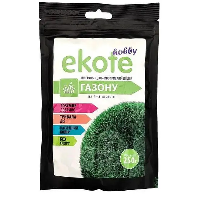 Мінеральне добриво ГТУ Ekote для газону - це добриво, яке призначене для підживлення та інтенсифікації зростання газонної трави. Це препарат тривалої дії - одноразового внесення його до ґрунту достатньо для забезпечення рослин повноцінними поживними речовинами протягом від 4 до 5 місяців.