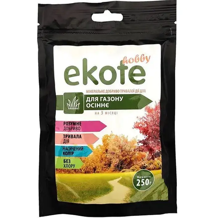 Мінеральне добриво ГТУ Ekote осіннє, для газону - це мінеральне підживлення тривалої дії на 3 міс. Її варто купити та використовувати на прибудинкових ділянках, у зонах відпочинку, а також на полях для спортивних ігор. Добриво розроблене спеціально для газонної трави, тому дозволяє виростити густе якісне покриття насиченого зеленого відтінку.