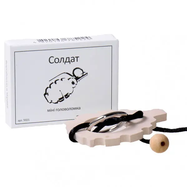 До кінця акції 3 дніЗахоплююча міні головоломка Солдат укр. Заморочка 5021 - це, на перший погляд, проста і нехитра гра, яка змусить Вашого юного генія неабияк попітніти. Для вирішення «хитрого» завдання необхідно розгадати секрет петельки і вузликів, що з'єднуються між собою. Мініатюрна іграшка укомплектована невеликою упаковкою у вигляді сірникової коробки, що робить цю головоломку ідеальним рішенням для поїздок. Легка, практично невагома гра поміститься навіть у невеликій кишені, тому її можна носити з собою на випадок тривалого очікування під час подорожей. Головоломка представлена в формі гранати, перев'язаної мотузкою, яку гравцеві і належить розплутати, щоб «зняти чеку». Така розвага не зашкодить дитячому здоров'ю завдяки екологічно чистим, безпечним матеріалам, з яких виготовлений ігровий набір. Приємне для тактильних відчуттів дерево не тільки не викличе алергічних реакцій, а й посприяє розвитку сенсорики. Кишенькова головоломка порадує і маленьких, і дорослих любителів незвичайних задачок, допоможе у формуванні посидючості і цілеспрямованості.
