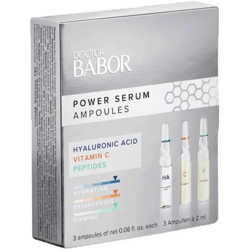 Мінінабір ампул для обличчя Babor Doctor Babor Power Serum Ampullen 3-er Set - неперевершена комбінація компонентів, які покращують загальний вигляд шкіри, при цьому омолоджують її, зволожують, наповнюють поживними компонентами та заряджають антиоксидантами для запобігання появі нових зморшок.
