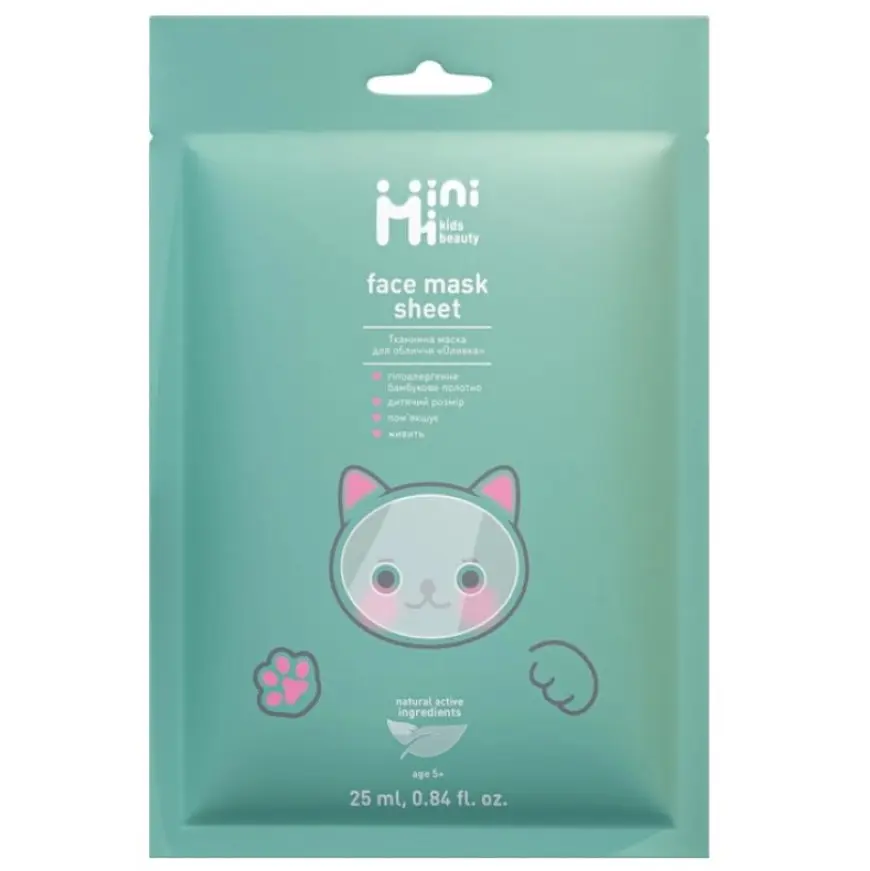 Тканинна маска для обличчя Minimi kids beauty Оливка - делікатний засіб, створений для турботливого догляду за чутливою дитячою шкірою.