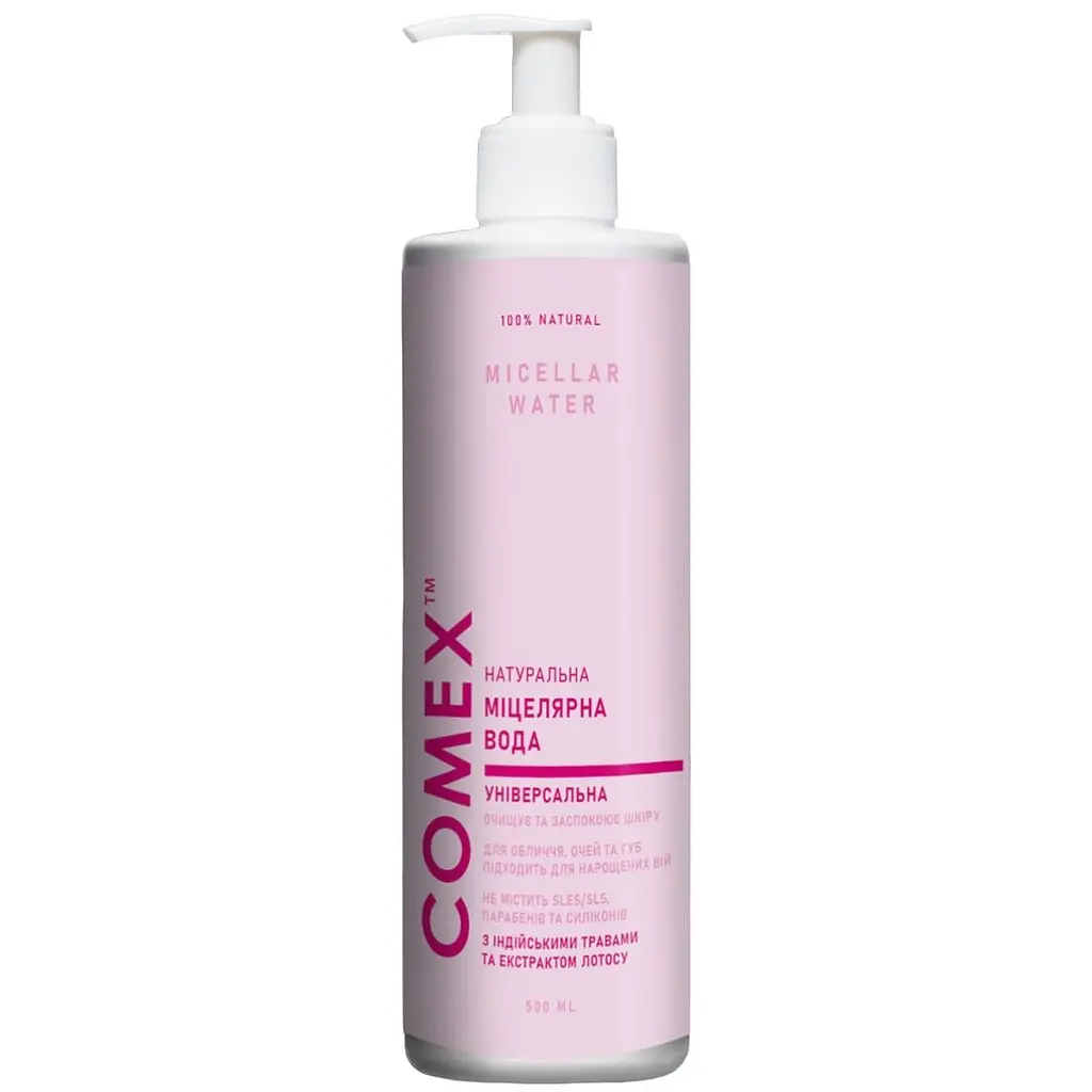Міцелярна вода Comex делікатно очищує шкіру від макіяжу, забруднень і надлишків шкірного жиру, має омолоджувальний ефект, не викликає подразнення, підходить для всіх типів шкіри.