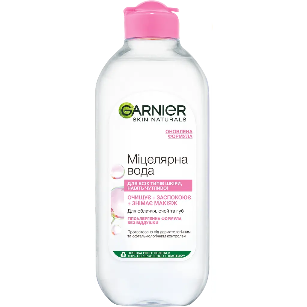 Міцелярна вода Garnier Skin Naturals призначена для дбайливого очищення шкіри будь-якого типу, в тому числі чутливої, ніжно захоплює забруднення і надлишки шкірного жиру з поверхні, забезпечуючи максимальний комфорт при очищенні шкіри.