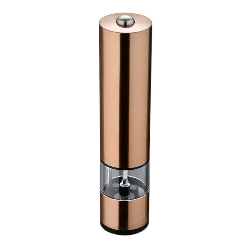 Виріб виконаний із високоякісної нержавіючої сталі з мідним покриттям, що забезпечує довговічність і естетичний вигляд. Електричний механізм із керамічними жорнами працює від батарейок, забезпечуючи зручність використання одним натисканням кнопки. Млинок оснащений підсвіткою для точного дозування та регулюванням ступеня помелу, що дозволяє адаптувати подрібнення під ваші потреби. Компактні розміри (5,2x22,3 см) роблять його зручним для зберігання та використання.
