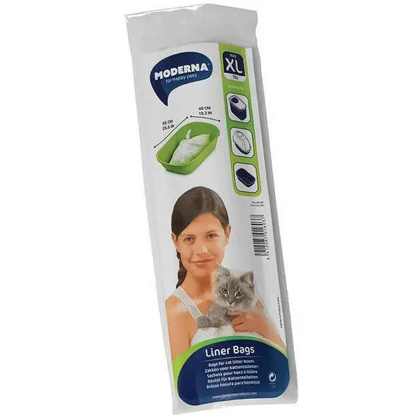 Пакети для котячого лотка Moderna Liner Bags XL сприяють підтримці чистоти та гігієни. Вони значно полегшують догляд за котячим туалетом: лоток залишається завжди чистим, а також спрощується процес повної заміни наповнювача. Спочатку на дно лотка стелиться пакет, потім насипається наповнювач, пакет фіксується бортиком або кришкою.