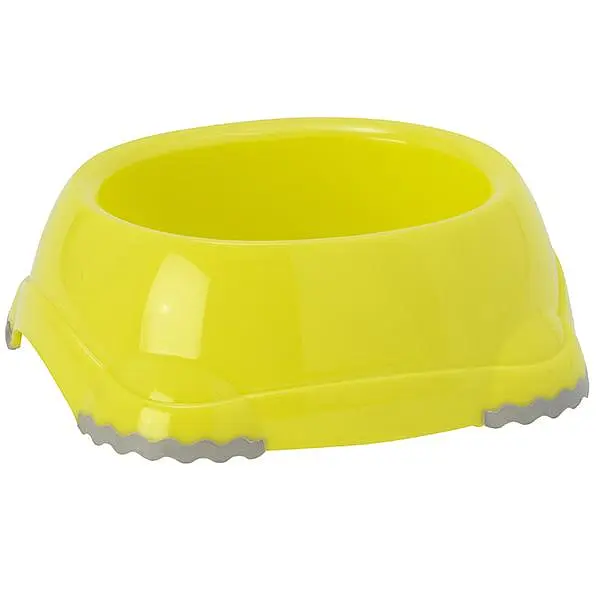 Миска для корму та води з полірованого пластику для собак невеликих порід та котів. Ніжки миски мають гумові накладки для запобігання ковзанню по підлозі. Якісний пластик не гнеться, не ламається, не вбирає запахи, миска легко миється, має тривалий термін експлуатації. Ергономічний дизайн, красиві яскраві кольори.