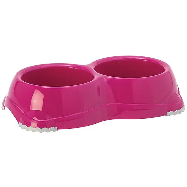 Миска для корму та води з полірованого пластику для собак невеликих порід та котів. Ніжки миски мають гумові накладки для запобігання ковзанню по підлозі. Якісний пластик не гнеться, не ламається, не вбирає запахи, миска легко миється, має тривалий термін експлуатації. Ергономічний дизайн, красиві яскраві кольори.