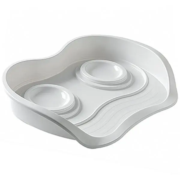 Односторонній бортик висотою 8 см запобіжить розсипанню корму та захистить ваше підлогове покриття. Однак він не перешкоджатиме вільному доступу тварин до корму та води. Додатково всередині столика навколо мисок є ще один невисокий бортик, який запобігає розливанню рідини.
