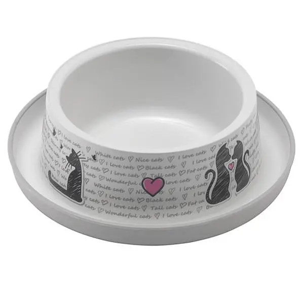Пластикова миска для котів Moderna Trendy Dinner Cats in Love - універсальний аксесуар для годування вашого улюбленця. Відносно високий борт (5,3 см) дозволяє використовувати цю модель для води, а також для будь-якої порції сухого чи вологого корму. Діаметр підходить для котів усіх порід, даючи їм змогу спокійно їсти.