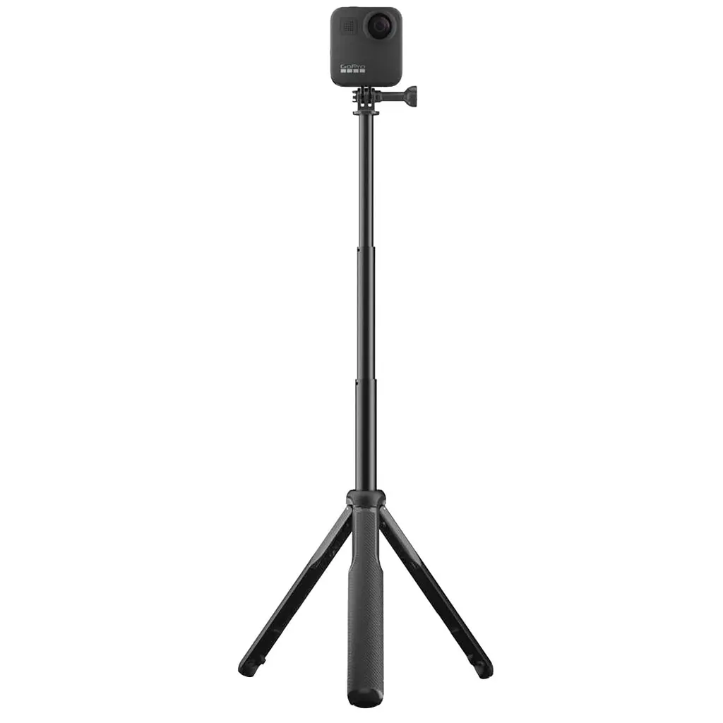 Телескопічний монопод-штатив рекомендується GoPro Max і любителям, і професійним операторам, які задіють в роботі камеру GoPro Max. У складеному вигляді довжина аксесуара трохи більше 20 см, а значить, легко поміщається в рюкзак, що цінно для операторів, що працюють на різних локаціях і мандрівників. У розкладеному-56 см. Для фіксації камери передбачений перехідник-майданчик в комплекті.