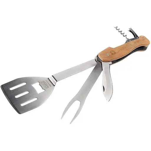 Мультитул туристичний Сила - це універсальний інструмент, який стане незамінним помічником як на природі, так і в повсякденному житті. Його конструкція поєднує в собі кілька корисних функцій, що дозволяють вирішувати різноманітні завдання, від нарізки продуктів до виконання інших робіт. Ніж виготовлений з високоякісного матеріалу, що забезпечує довговічність леза та його здатність зберігати різкість на тривалий час. Ергономічна рукоятка забезпечує зручний і надійний захват, а компактні розміри дозволяють носити його з собою в кишені або рюкзаку. Цей ніж стане корисним для любителів активного відпочинку, туристів, а також для використання вдома в побуті, де він зможе виконувати роль інструменту для дрібних робіт.