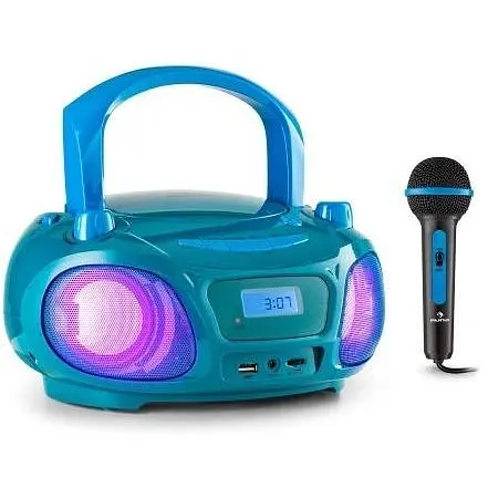 Ще однією особливістю є мікрофон, який миттєво перетворює звичайний бумбокс на стильне караоке.