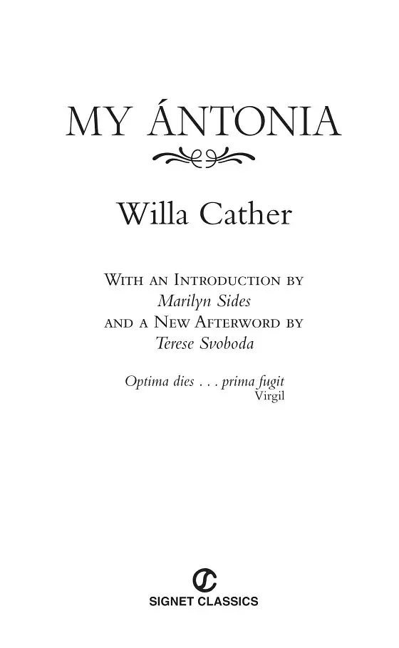 Emigrating from Bohemia to Black Hawk, Nebraska, with her family, Ántonia discovers no white-framed farmhouse or snug barn. Instead, the cultured Shimerda family finds itself huddled in a primitive sod house buffeted by the ceaselessly blowing winds on the Midwest prairie. For her childhood friend Jim Burden, Ántonia comes to embody the elemental spirit of this frontier. Working alongside men, she survives without compromising the rich, deep power of her nature. And Willa Cather’s lush descriptions of the rolling Nebraska grasslands interweave with the blossoming of a woman in the early days of the twentieth century in a novel that is an epic chronicle of America’s past.
