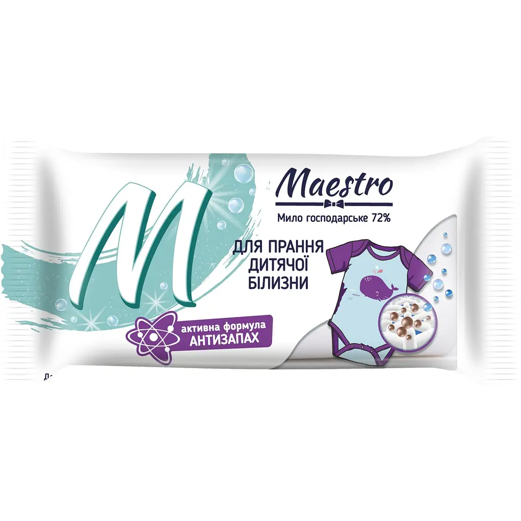 Мило господарське Maestro 72% для прання дитячої білизни - це незамінний помічник у догляді за дитячими речами. Завдяки особливій формулі, це мило забезпечує ефективне видалення плям, зберігаючи при цьому ніжну текстуру і колір тканин. Воно ідеально підходить для ручного прання, забезпечуючи дбайливе очищення без шкоди для чутливої шкіри дитини. Це особливо важливо для батьків, які піклуються про здоров'я своїх малюків.