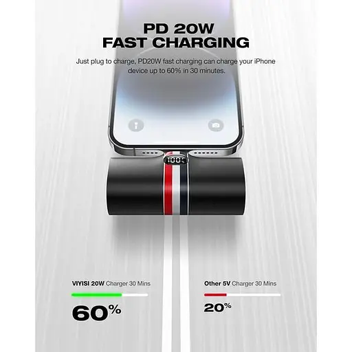 Спеціальна характеристика: Кишеньковий розмір, тонкий, з підставкою, швидке заряджання 20 Вт PD, світлодіодний дисплей, вбудований кабель.