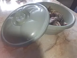 чудова миска. пластик доволі міцний, не гнеться під навантаженням. Кришка не злітає, але при цьому є невеличкий люфт, тому якщо у вас там щось забродить то кришку не зірве. Доволі містка, влазить два кілограми карасів