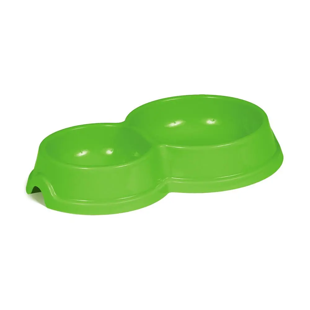 Подвійна миска дозволить кішці пити і їсти, не переходячи з місця на місце. Велика ємність призначена для води, менша - для корму. Перегородка з виступом між ними не дає шматочкам їжі потрапити у воду.