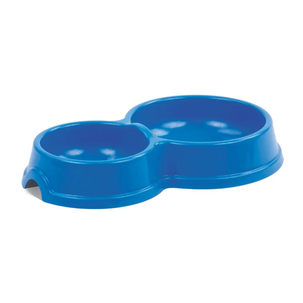 Подвійна миска дозволить кішці пити та їсти, не переходячи з місця на місце. Велика ємність призначена для води, менша - для корму. Перегородка з виступом між ними не дає шматочкам їжі потрапити у воду.