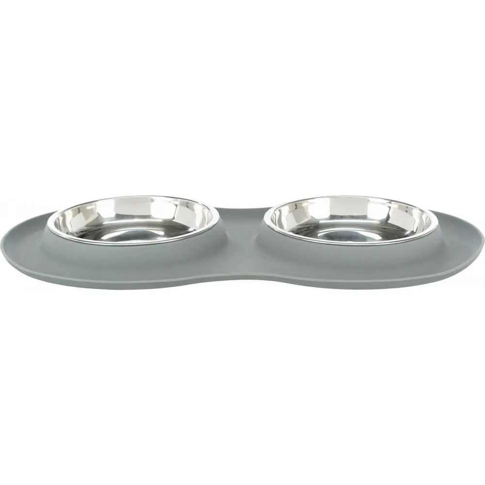 Комплект Trixie з 2-х мисок - це дуже практичне рішення, адже у вашої кішки відразу з'являється посуд і для води, і для їжі. Силіконова основа не дозволяє мискам перевертатися або ковзати по підлозі та полегшує підтримання чистоти на місці годування. Миски неглибокі.