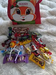 Подарунковий набір Roshen містить багато видів цукерок: вафельні, шоколадні, карамельні, льодяники та желейні. Загалом у цій новорічній сумочці 25 штук. Хороший варіант подарунку або для особистого споживання.Цукерки свіжі, смачні