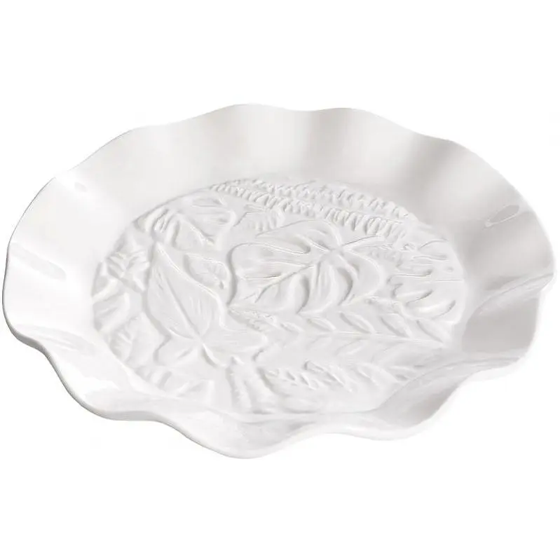 Набір обідніх тарілок "White City Монстера" - білосніжна колекція столового сервірувального посуду з фарфору. У наборі 3 тарілки. Оригінальна та стильна форма з рельєфною окантовкою у формі листя монстери. Діаметр тарілки 26 см, висота - 4 см. Посуд колекції "White City" спеціально створений для інтенсивного щоденного професійного та домашнього використання. Можна мити в посудомийній машині та використовувати для підігрівання в мікрохвильовій печі. Упаковані в картонну коробку.
